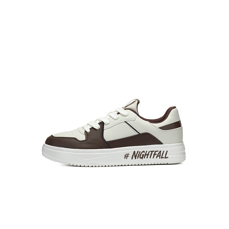 Thiết kế hiện đại cho lứa tuổi Teen: Họa tiết "#NIGHTFALL" in sắc nét bên hông giày cùng biểu tượng mặt cười trên lưỡi gà tạo nên điểm nhấn sáng tạo và tràn đầy năng lượng.