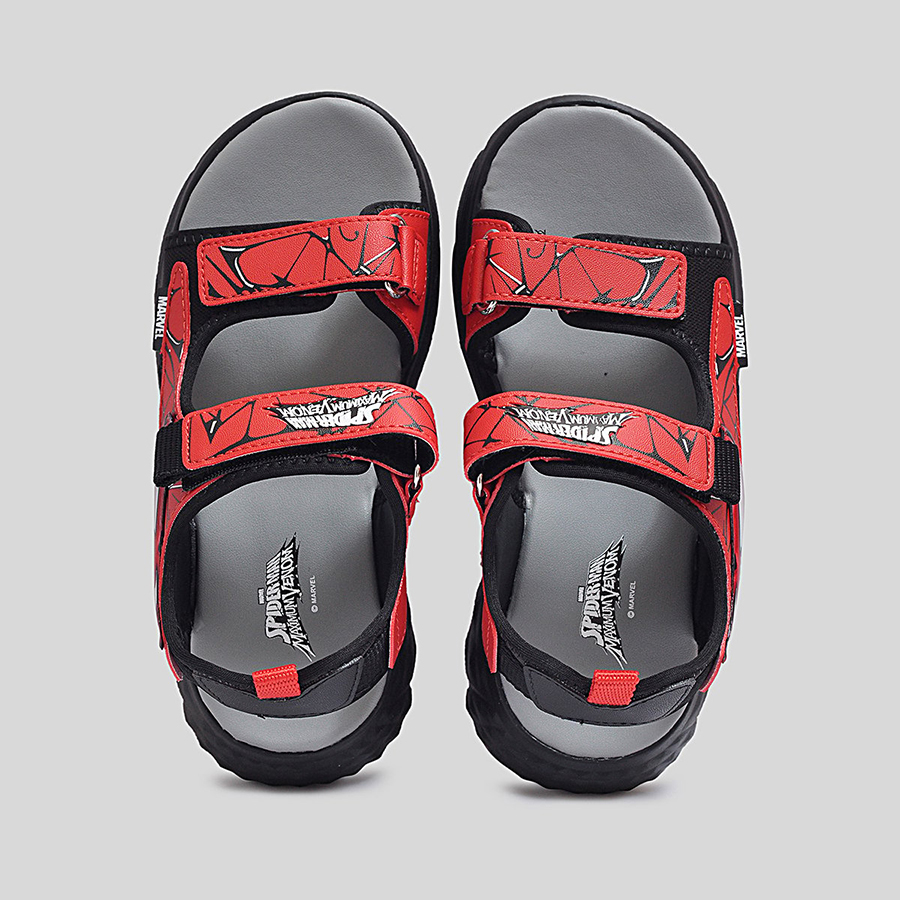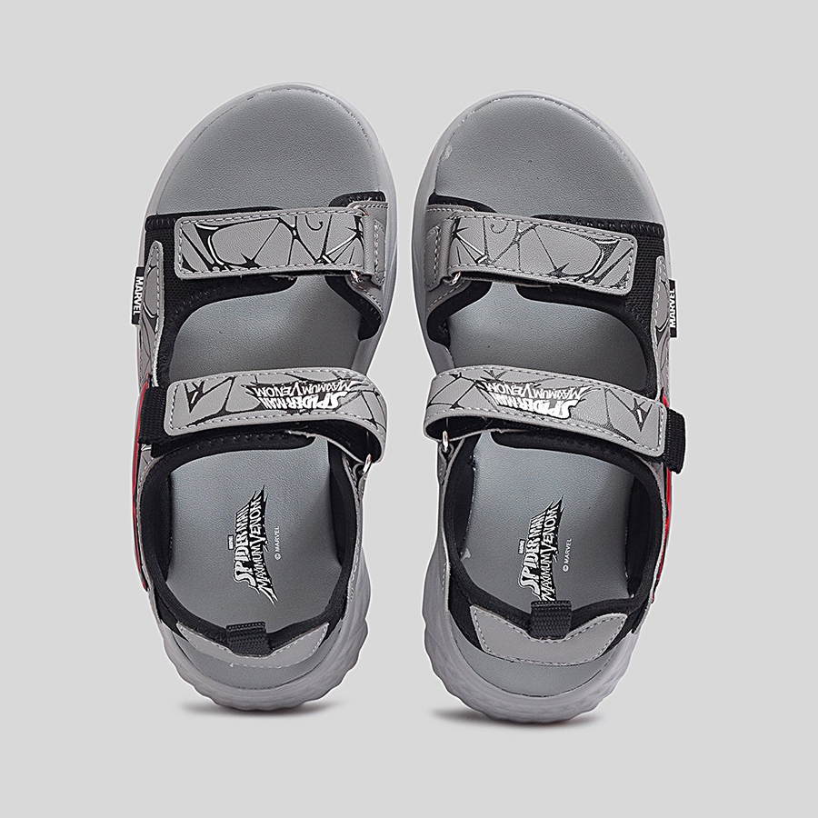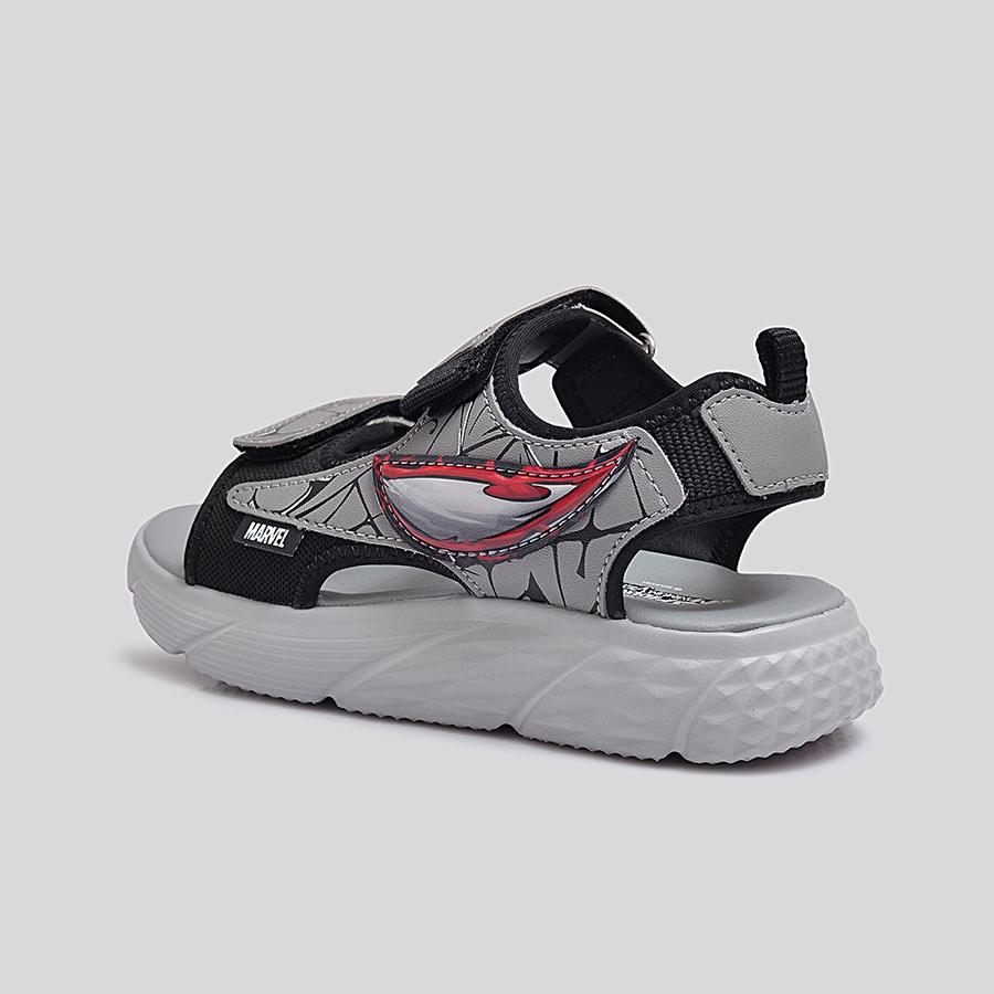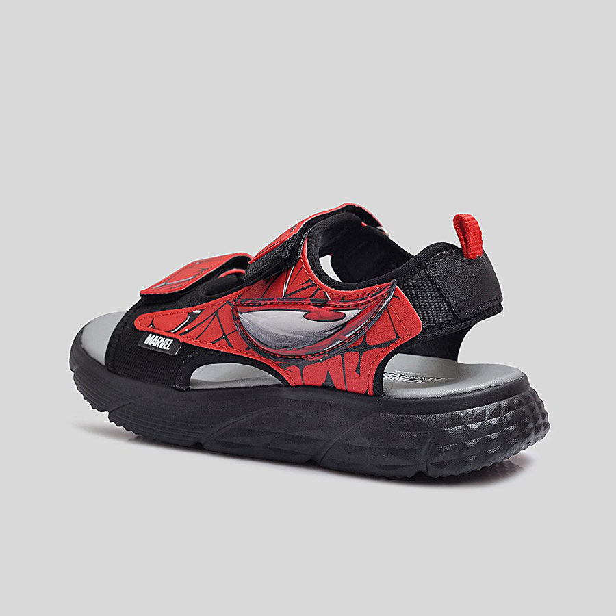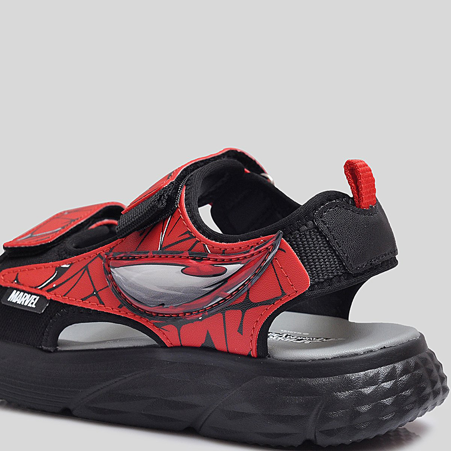 Phần quai sandal được làm từ chất liệu tổng hợp cao cấp, có độ bền cao và in họa tiết Spider-Man nổi bật, giúp bé thêm tự tin trong từng bước đi. Quai dán tiện lợi cho phép bé dễ dàng mang vào và tháo ra, đồng thời điều chỉnh vừa vặn theo kích thước bàn chân. Đế sandal được thiết kế dày dặn, êm ái, với các rãnh chống trượt giúp tăng khả năng bám dính và giảm trơn trượt khi di chuyển.